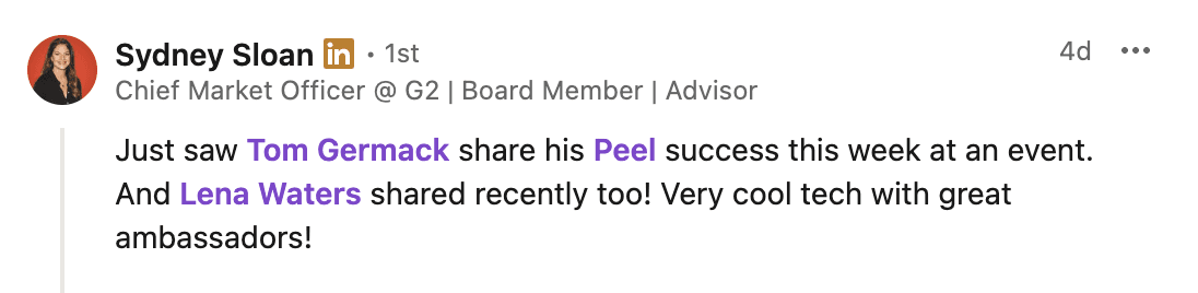 "Peel is changing the way we think about prospect and customer discovery and how to generate real conversations."